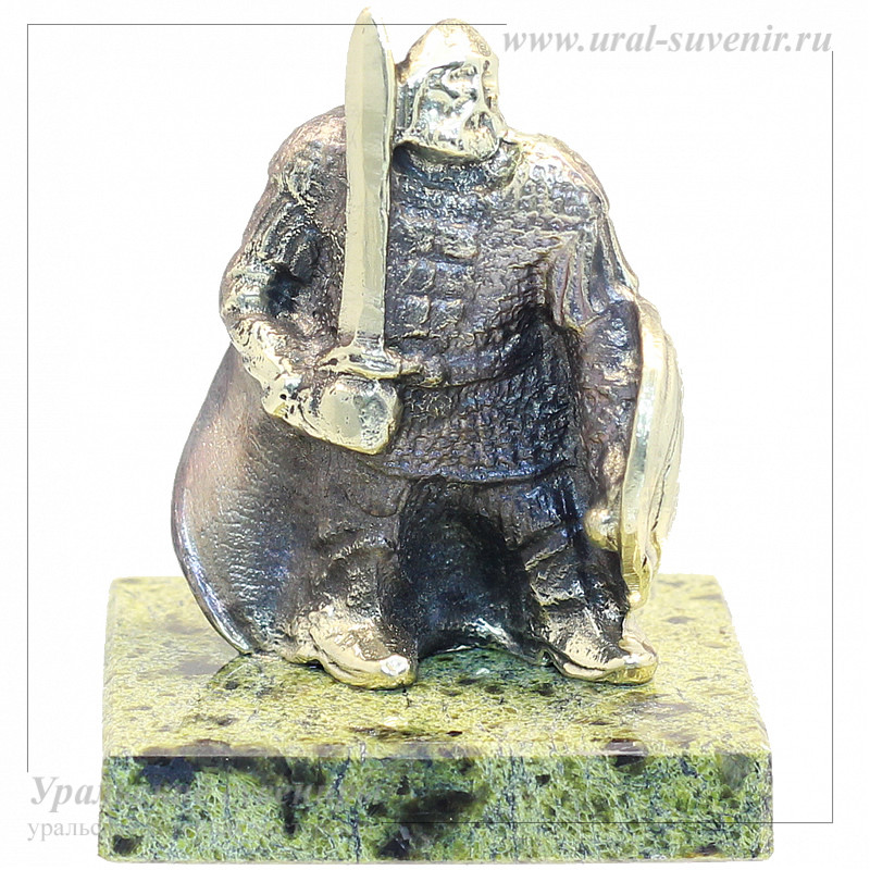 Статуэтка "Богатырь с мечом" из литьевой бронзы станет не только украшением вашего дома, но и напоминанием о духе древних времен и героических подвигах. Приобретите этот уникальный сувенир и ощутите в себе мощь и мудрость богатыря!