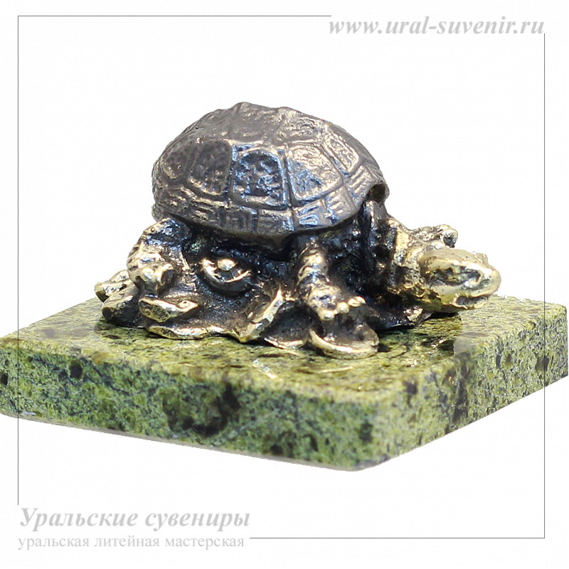 Представляем вам уникальную статуэтку Черепаха на деньгах, изготовленную из литьевой бронзы в уральской литейной ремесленной мастерской. Этот изысканный сувенир является прекрасным образцом народного художественного промысла уральских мастеров-ремесленников.