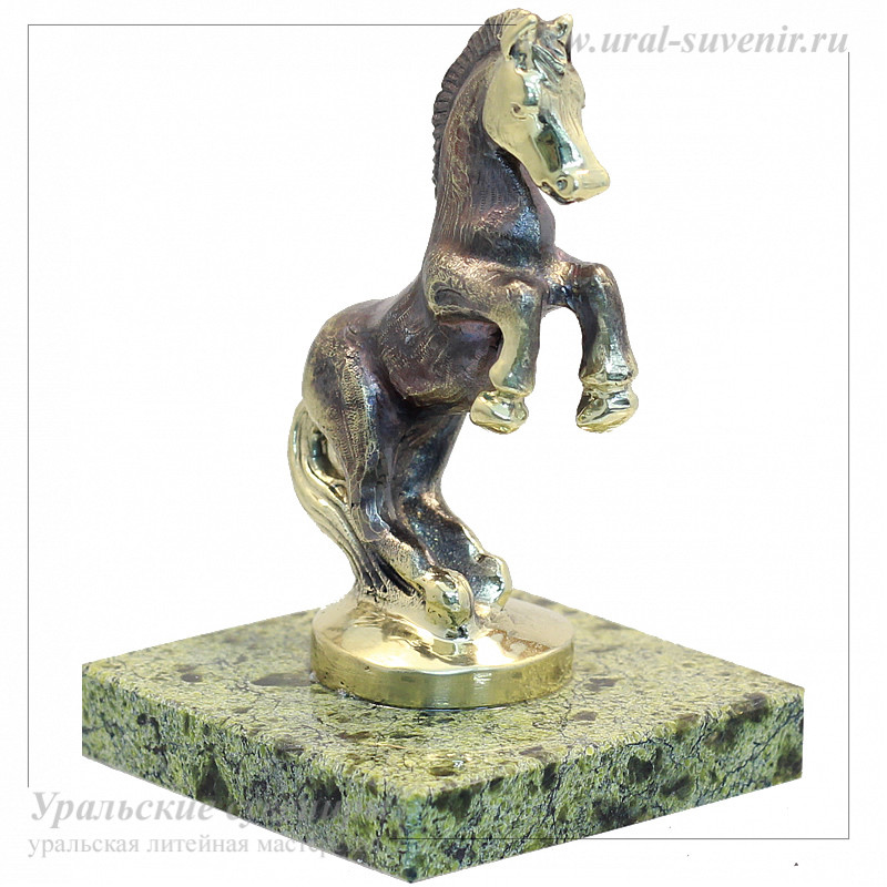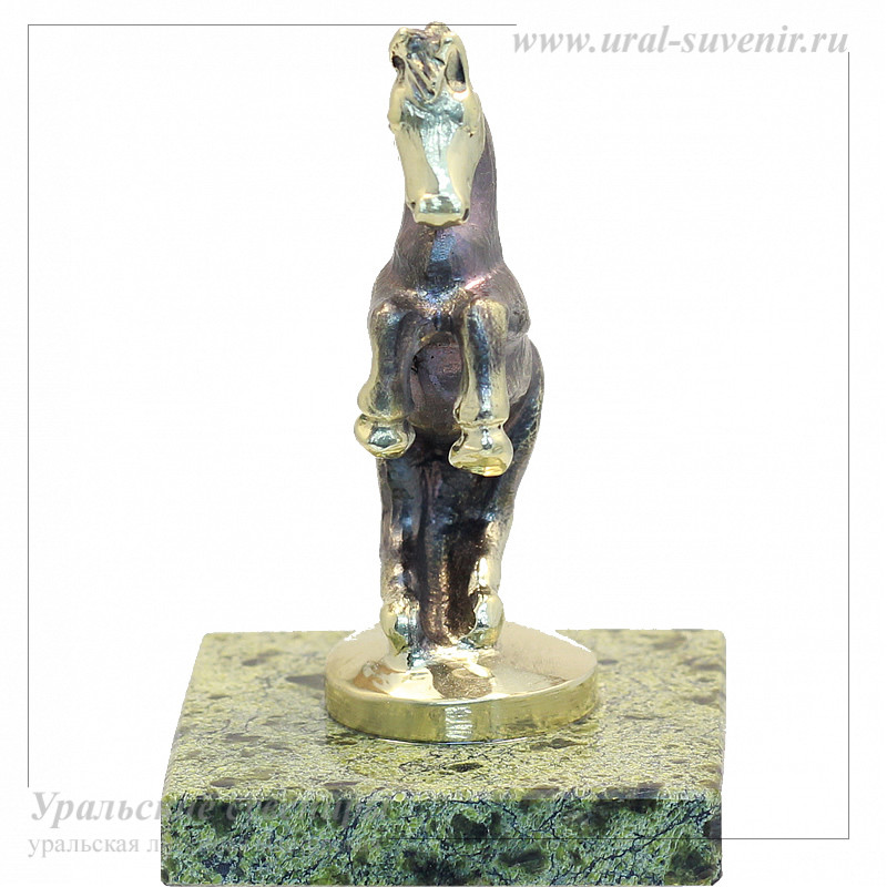 Представляем вашему вниманию уникальное произведение искусства - статуэтку Лошадь на дыбах из литьевой бронзы на подставке из светлого змеевика. Эта великолепная статуэтка имеет размеры 50х50х80 мм, что делает ее компактной и элегантной декоративной деталью для вашего интерьера.