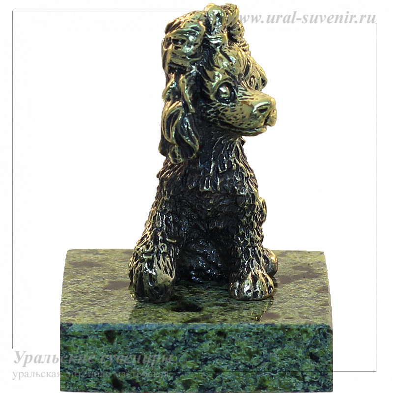 Представляем вашему вниманию уникальную статуэтку собаки Пуделя, выполненную из литьевой бронзы, сидящей на изысканной подставке из светлого змеевика. Этот изысканный предмет искусства имеет размеры 37х37х50 мм и является настоящим произведением ремесла и мастерства.