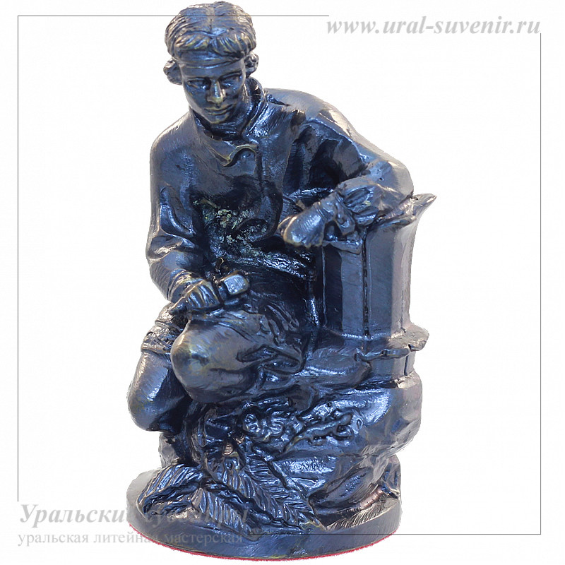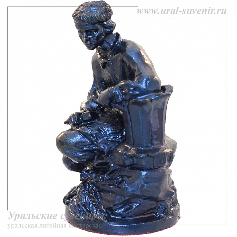 Данила мастер - это уникальная миниатюра из серии Кусинское литье, созданная в Уральской литейной ремесленной мастерской. Изготовлена из высококачественной литьевой бронзы, она представляет собой произведение искусства размером 50х50х90 мм. Этот сувенир является ярким представителем уральских художественных промыслов, которые передают традиции и мастерство уральских мастеров-ремесленников.